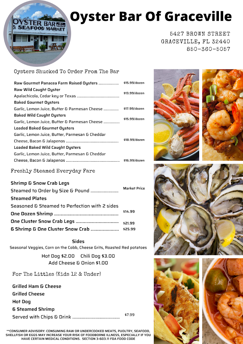 If you’re curious about what’s waiting inside the Oyster Bar Of Graceville Menu, it’s the kind of lineup that instantly makes you hungry. Tucked away at 5427 Brown St, Graceville, FL 32440, this spot keeps things simple, fresh, and full of flavor. Oysters are clearly the star here-served raw, baked, or steamed-briny and bright with that just-caught taste that seafood lovers chase.
